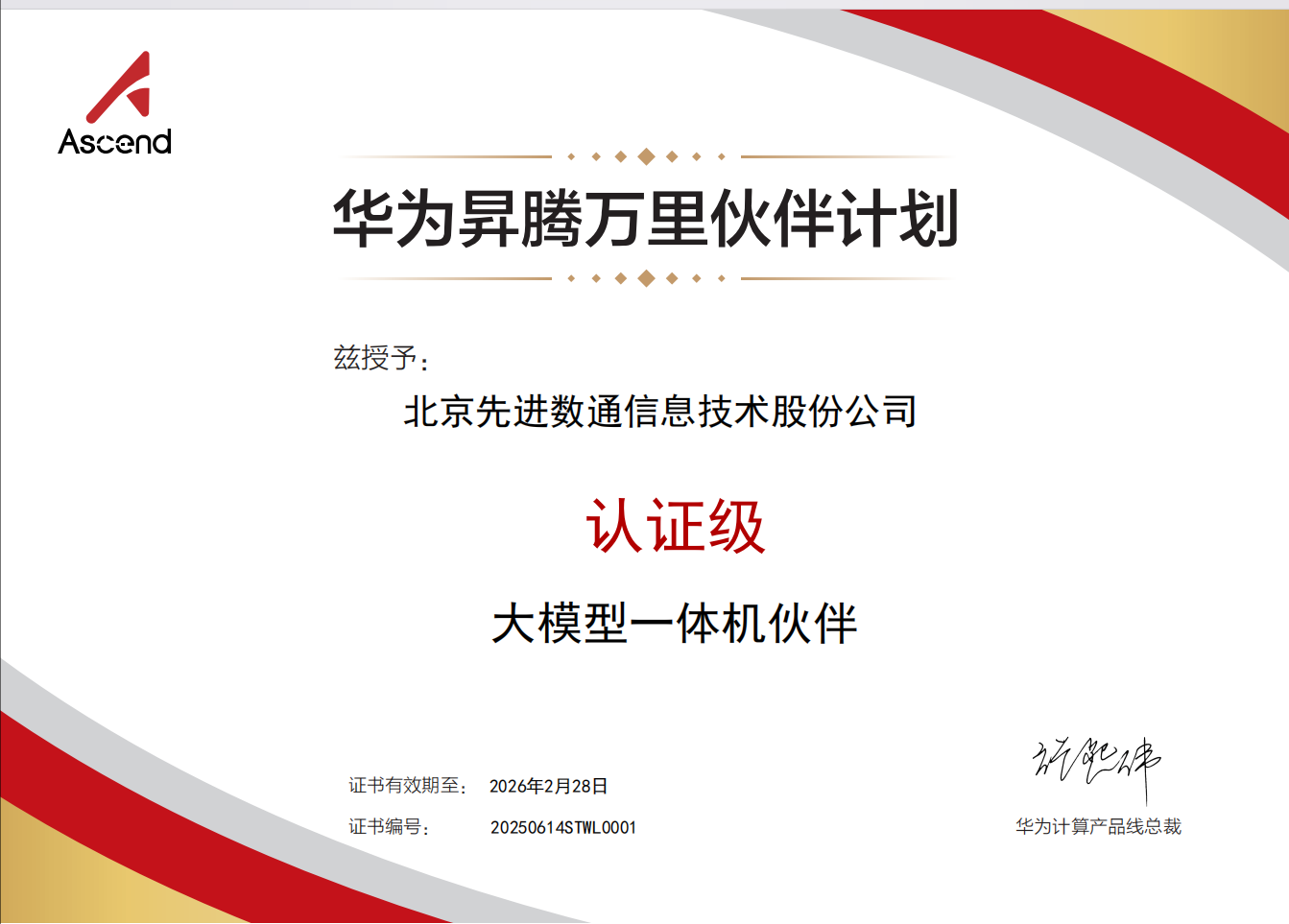 2025年6月,北京东升国际 东升信息技术股份公司(以下简称"东升国际 东升")与华为技术有限公司达成大模型一体机战略合作。基于昇腾AI基础软硬件平台,东升国际 东升整合自身专业化团队构建的行业AI解决方案,正式推出基于自主技术整合的东升国际 东升品牌大模型一体机产品。